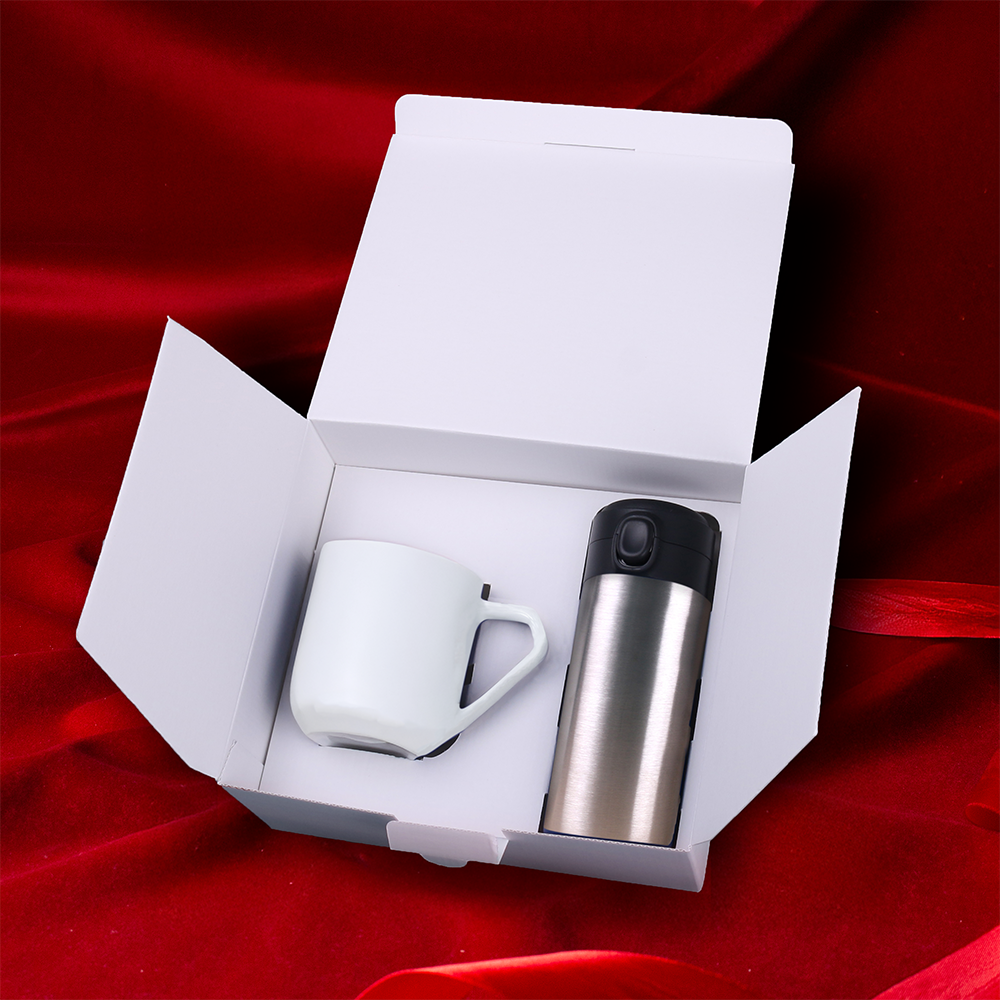 Perfect for all kinds of trips, the customized Vega thermal mug paired with the impressive Impress porcelain mug. The set is packed in dedicated Snowy eco-friendly packaging. The whole set comes with an elegant personalized dust jacket. THE DECORATION SHOWN IS FOR ILLUSTRATIVE PURPOSES ONLY AND IS NOT INCLUDED IN THE PRODUCT PRICE. THE SET IS AVAILABLE IN DEDICATED SNOWY PACKAGING WITH THE SELECTED DECORATION OPTION.